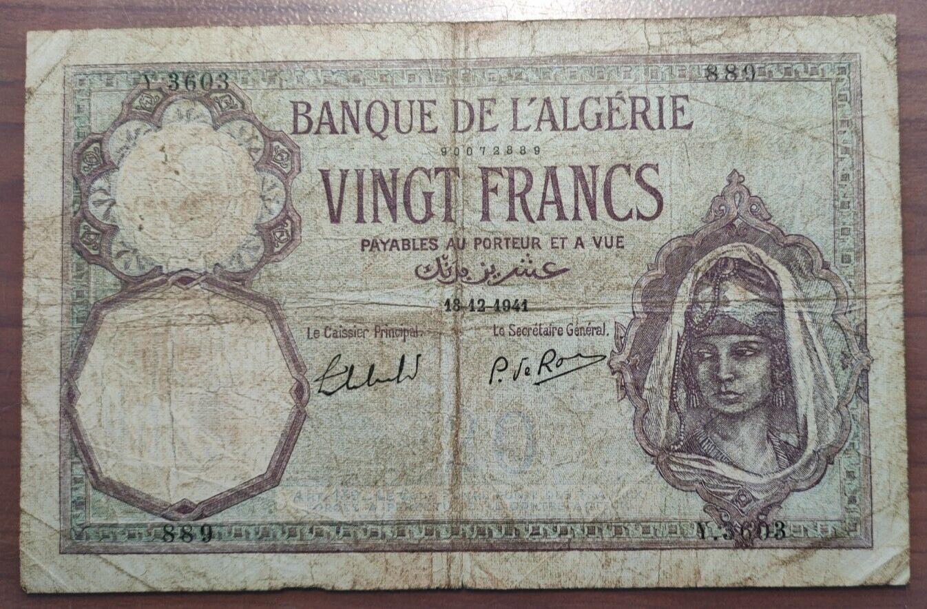 ARGELIA ALGERIA 1000 FRANCS 1942 WATERMARK WOMAN P-86 BC+/MBC-