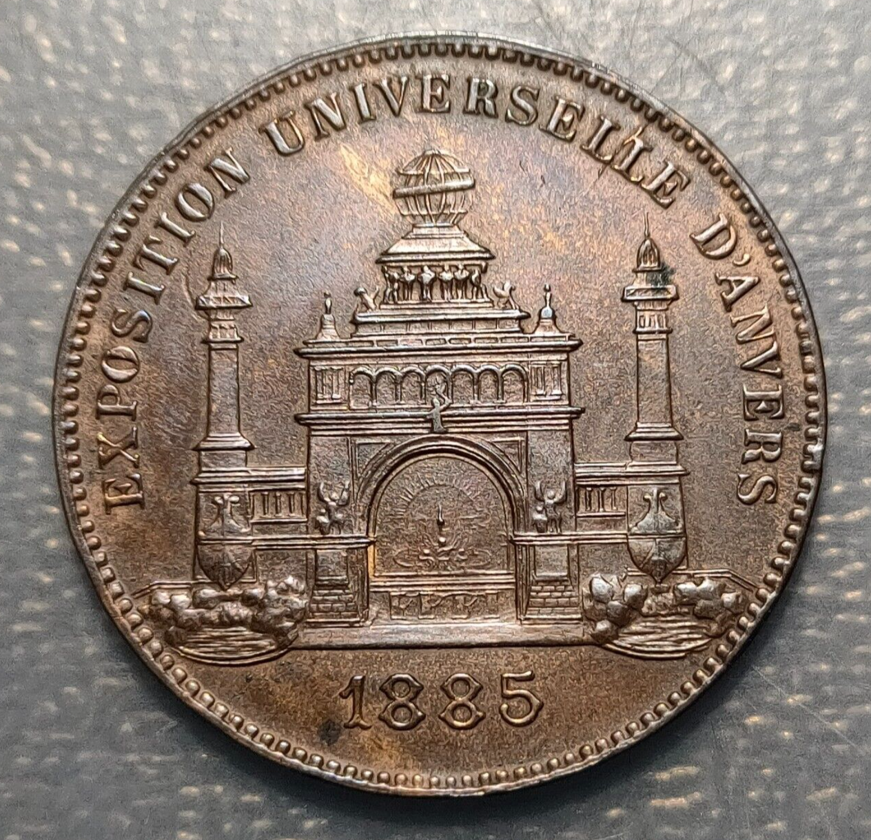 BELGICA BELGIUM MEDALLA 1885 EXPOSICION UNIVERSAL DE AMBERES COBRE (BRONCE) 30mm