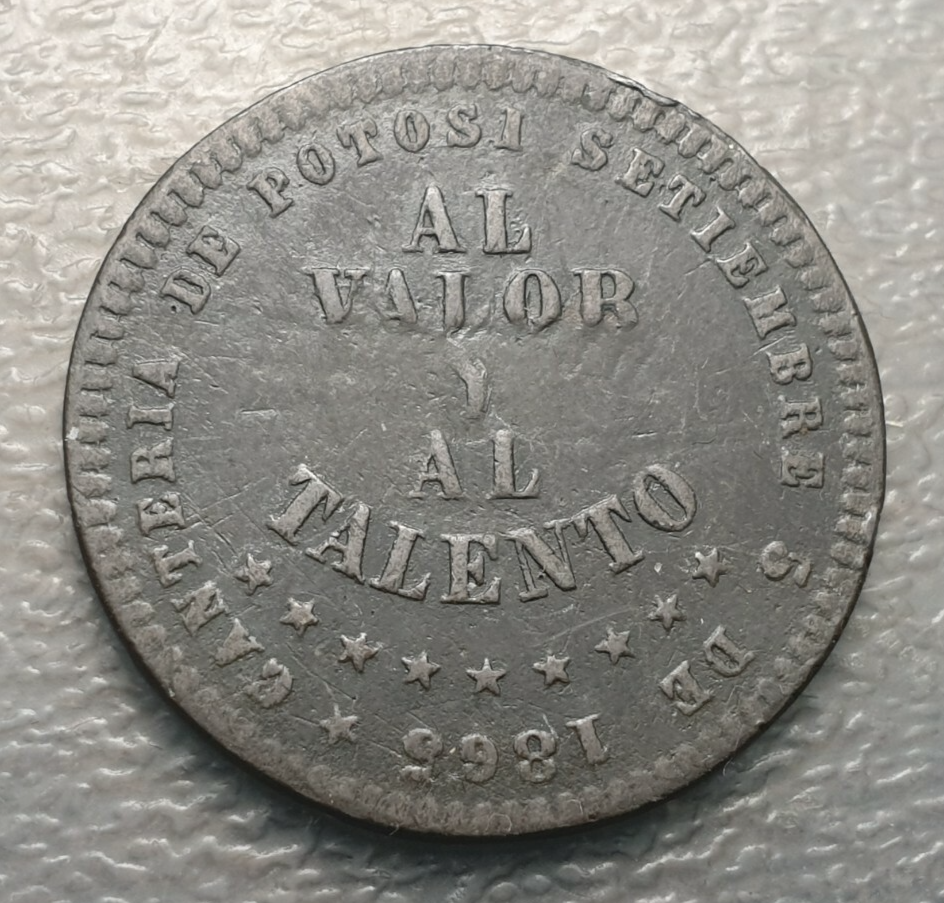 BOLIVIA POTOSI 1/2 MELGAREJO 1865 COPPER – PATTERN?