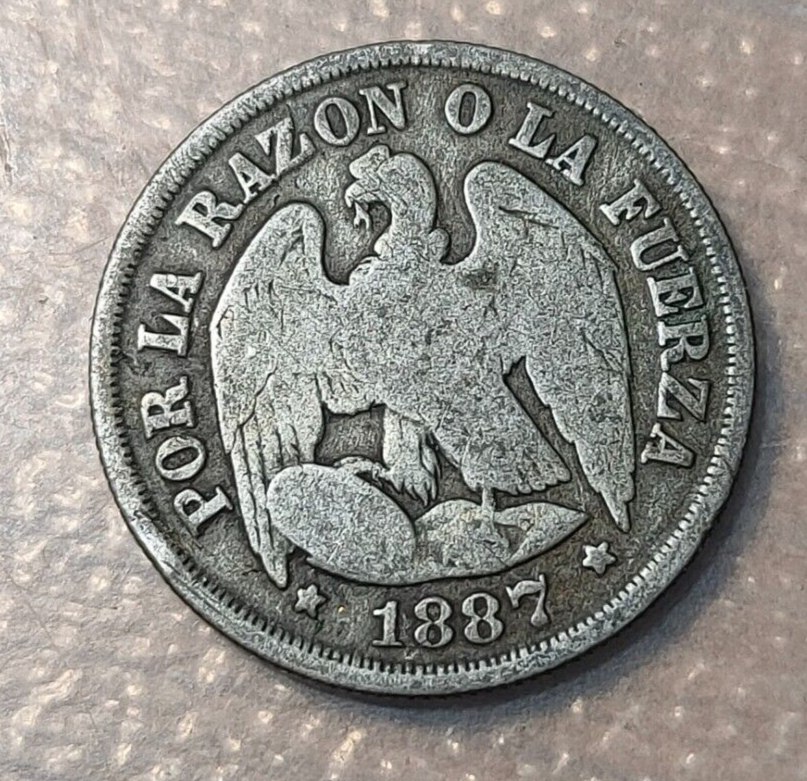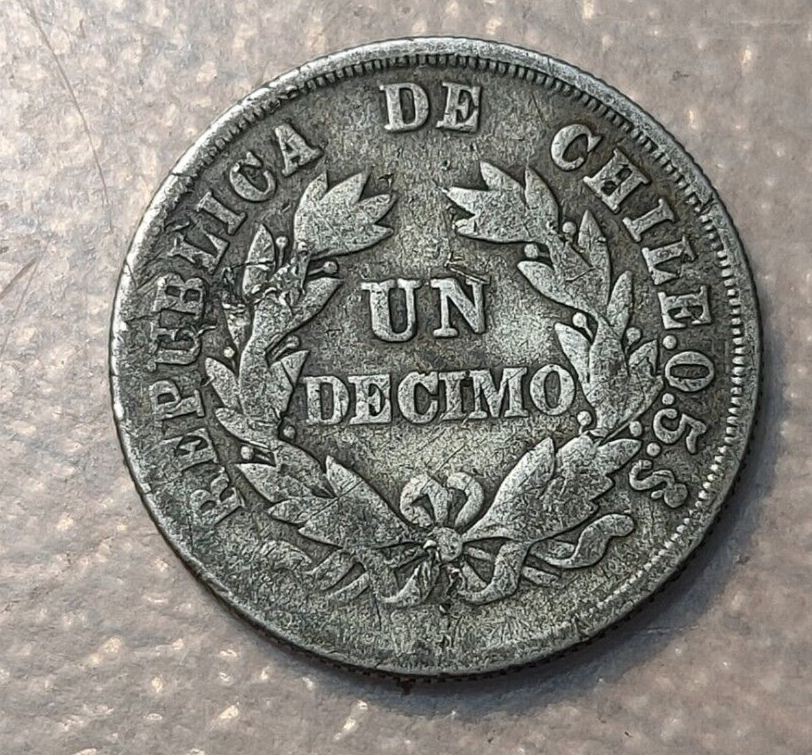 CHILE SANTIAGO 1 DECIMO 1887 BC+