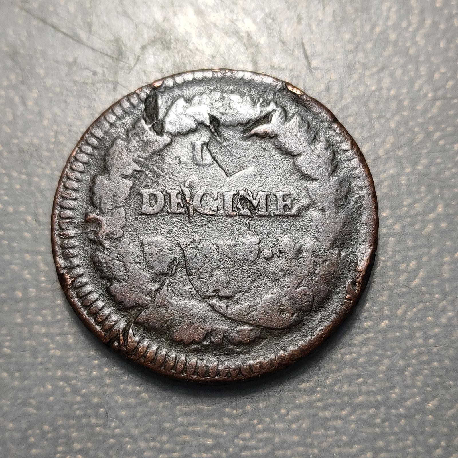 ERROR FRANCIA FRANCE 1 DECIME L’AN 5 A ACUÑADO SOBRE 2 DECIMES ERROR