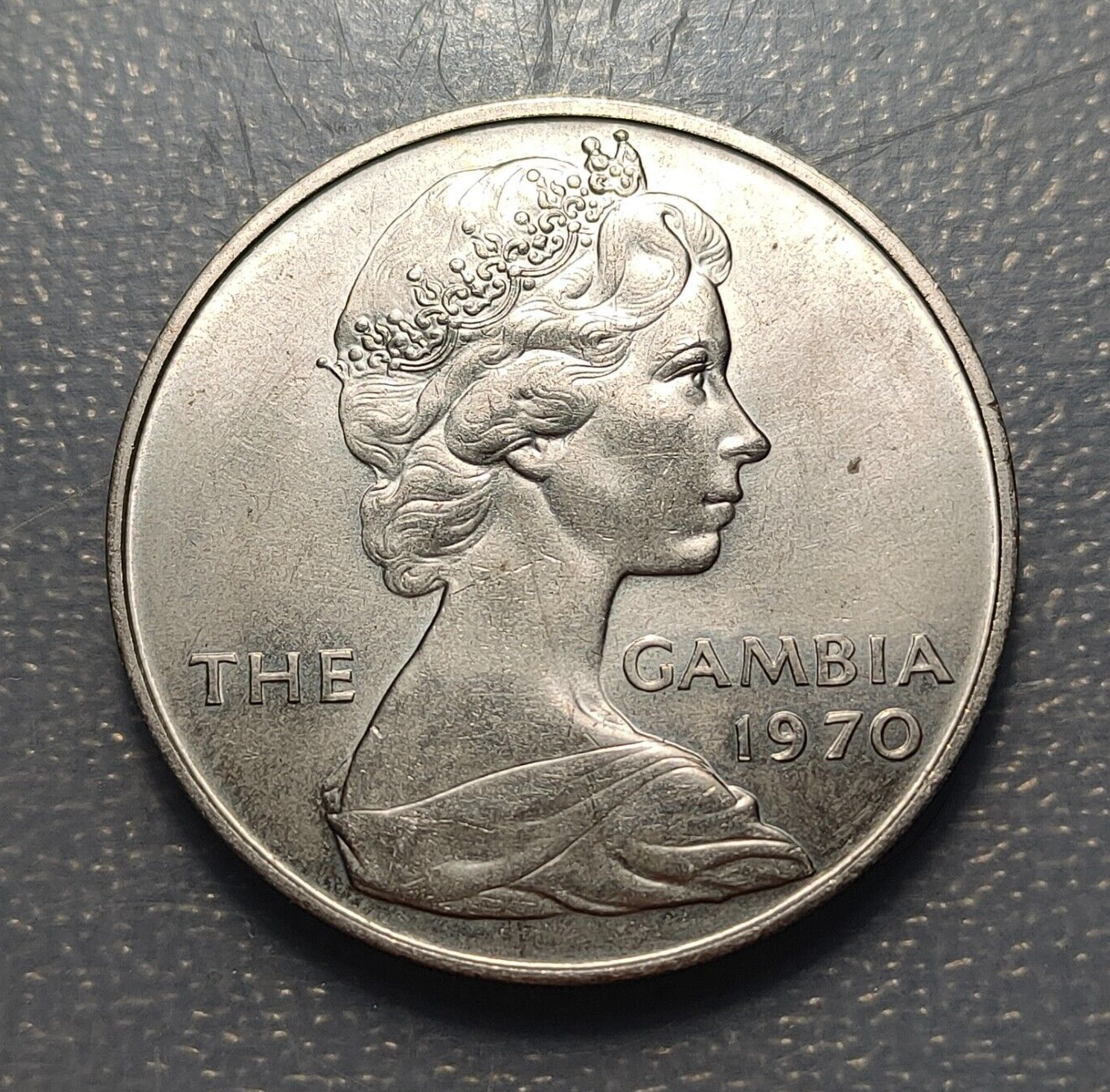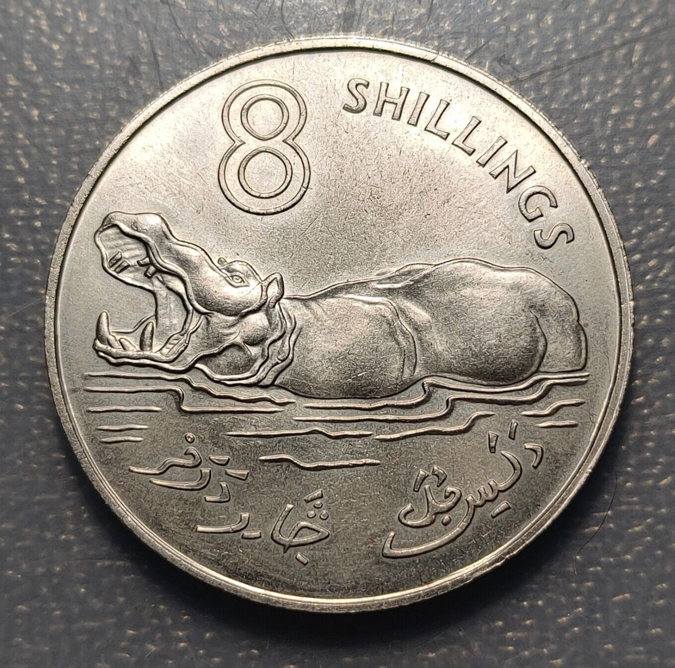 GAMBIA 8 SHILLINGS 1970 EBC+/SC- HIPOPOTAMO ANIMALES NIQUEL NICKEL