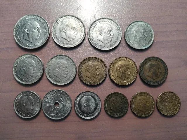1 PESETA, 5 PESETAS, 25 PESETAS, 2’50 PESETAS, 25 CÉNTIMOS