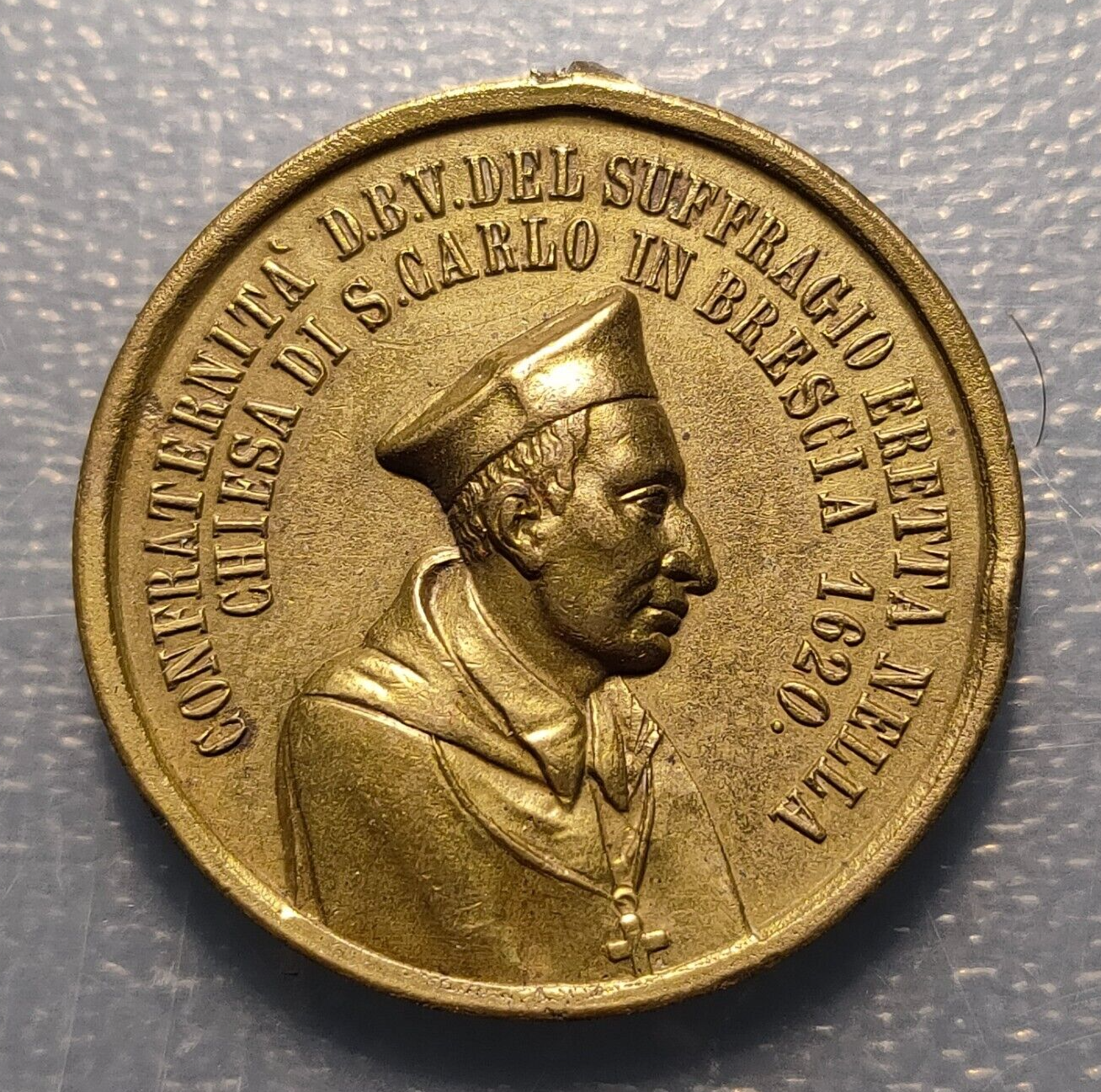 MEDALLA RELIGIOSA COFRADIA BEATA VIRGEN SUFRAGIO CARLO BORROMEO VIRGEN CON NIÑO