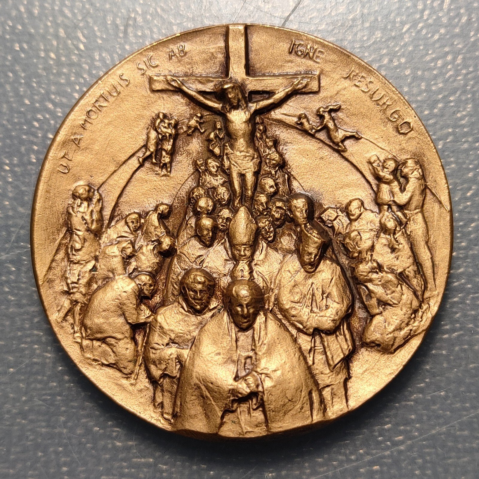 MEDALLA RELIGIOSA CRISTO EN LA CRUZ MUERTE RESURRECCION 50mm