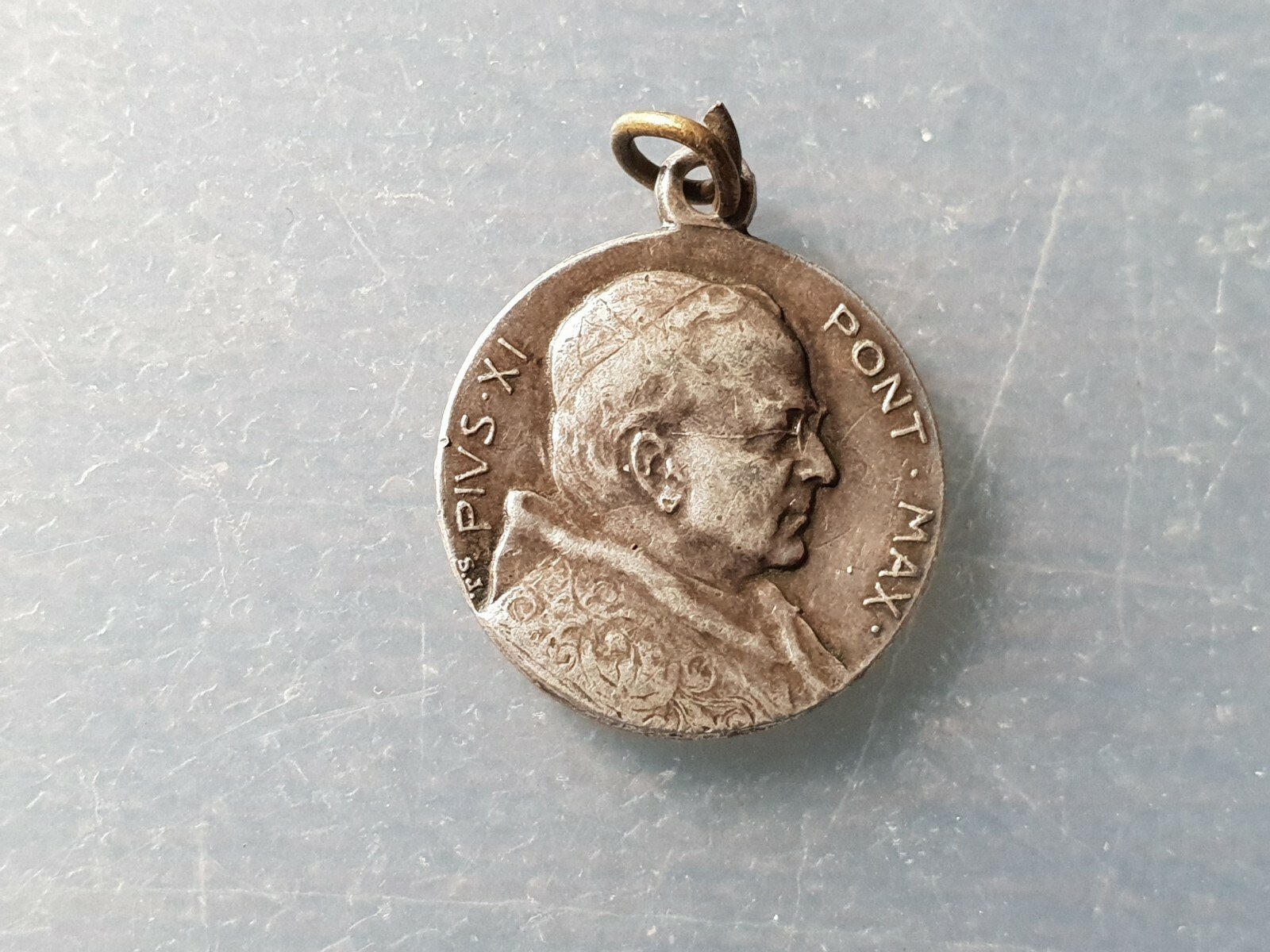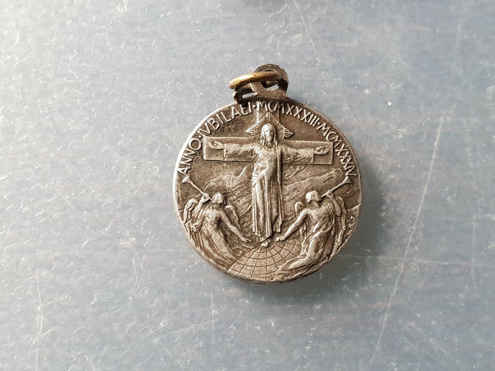 MEDALLA RELIGIOSA JUBILEO 1933-34 PAPA PIO XI / CRISTO EN CRUZ ANGELES 20X17 mm