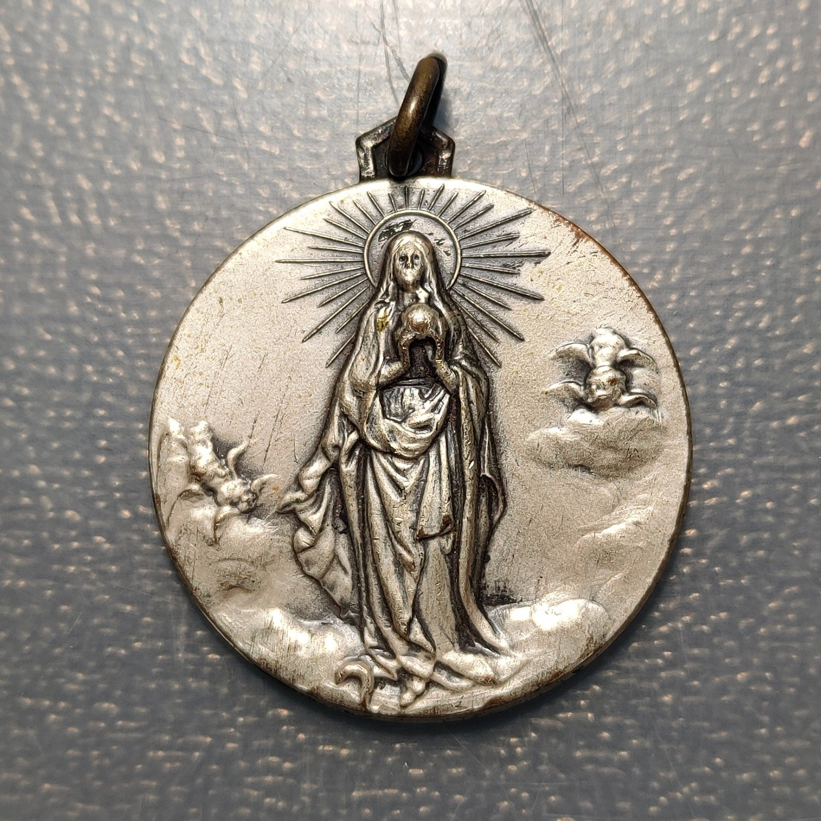 MEDALLA RELIGIOSA VIRGEN ENTRE ANGELES / OBRAS MISIONALES PONTIFICIAS – ROMA