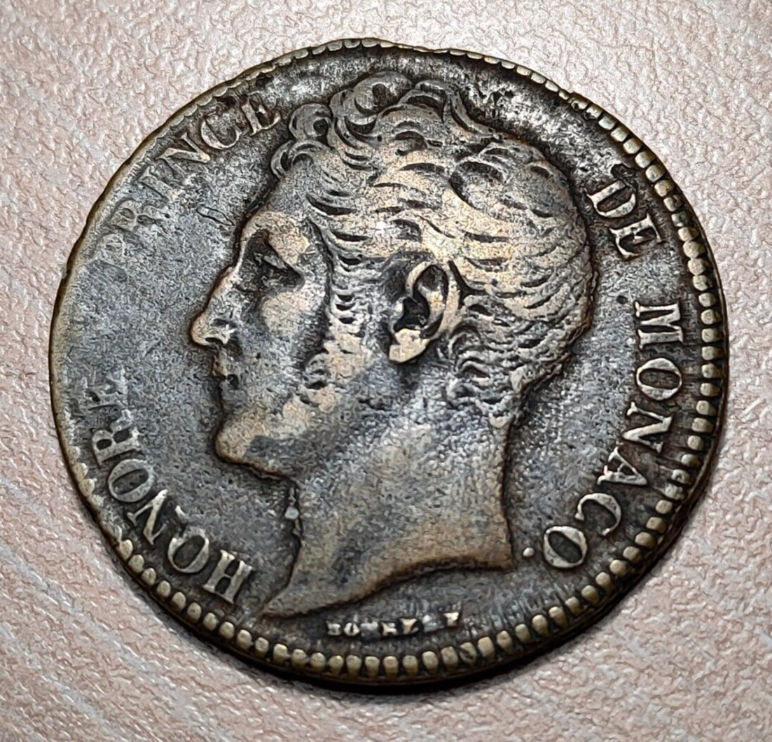 MONACO HONORE V 5 CENTIMES 1837 C BRONCE BRONZE CAST MBC- ESCASA SCARCE