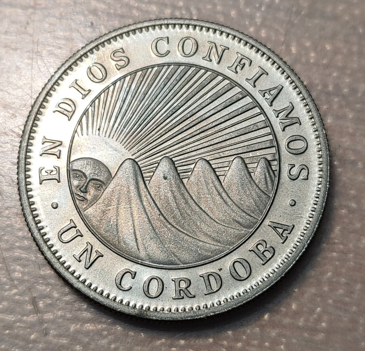NICARAGUA 1 CORDOBA 1972 PROOF KM 26 COIN ROTATION
