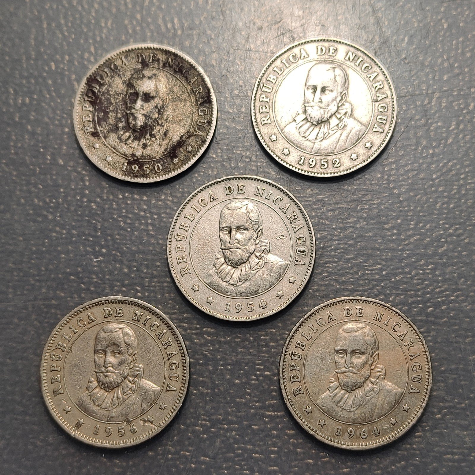 NICARAGUA LOTE 5 MONEDAS 25 CENTAVOS