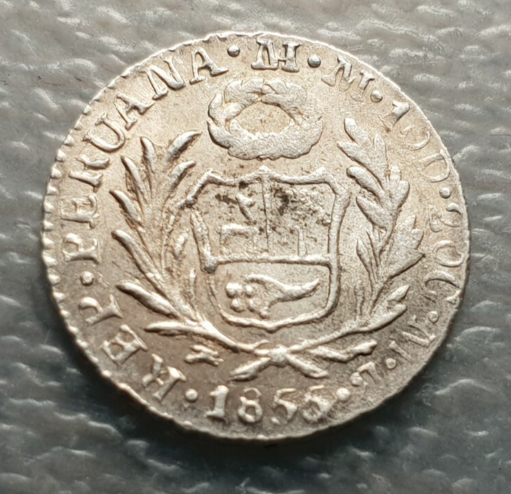 PERU LIMA 1/2 REAL 1855 MB HIGH GRADE