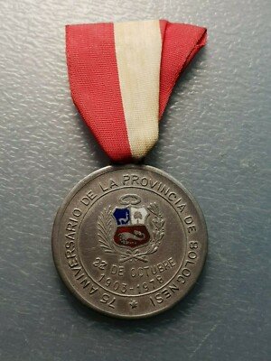 PERU MEDALLA 1978 75 ANIVERSARIO PROVINCIA DE BOLOGNESI 35×30 PLATA