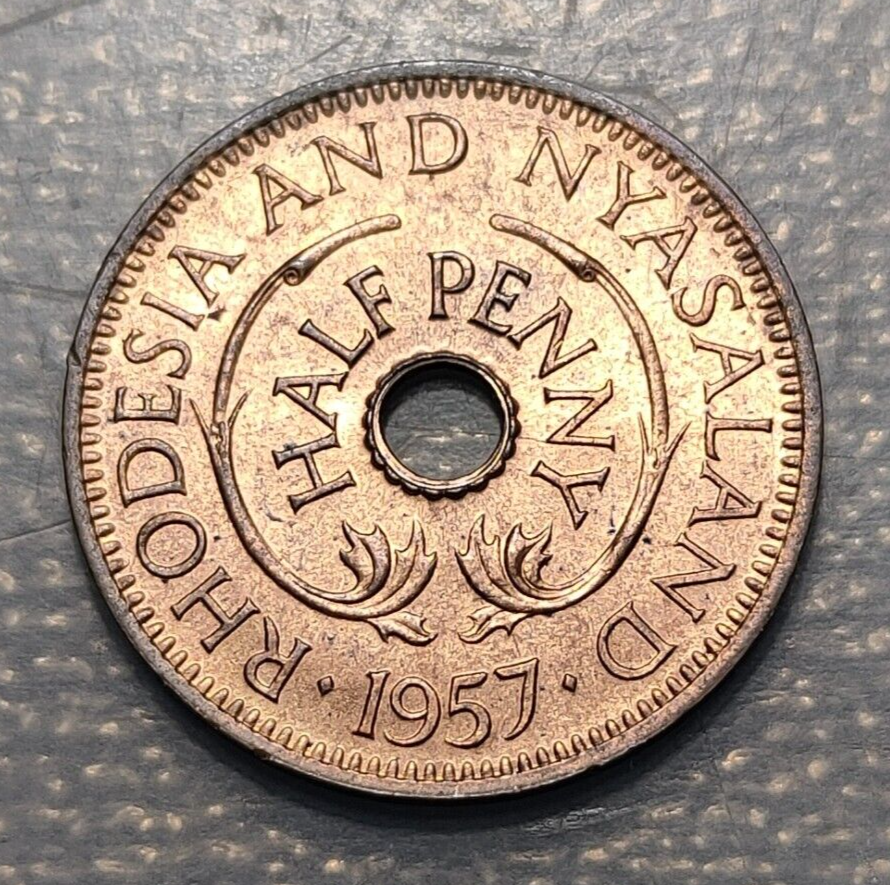 RHODESIA & NYASALAND 1/2 PENNY 1957 SC UNC BRILLO ORIGINAL