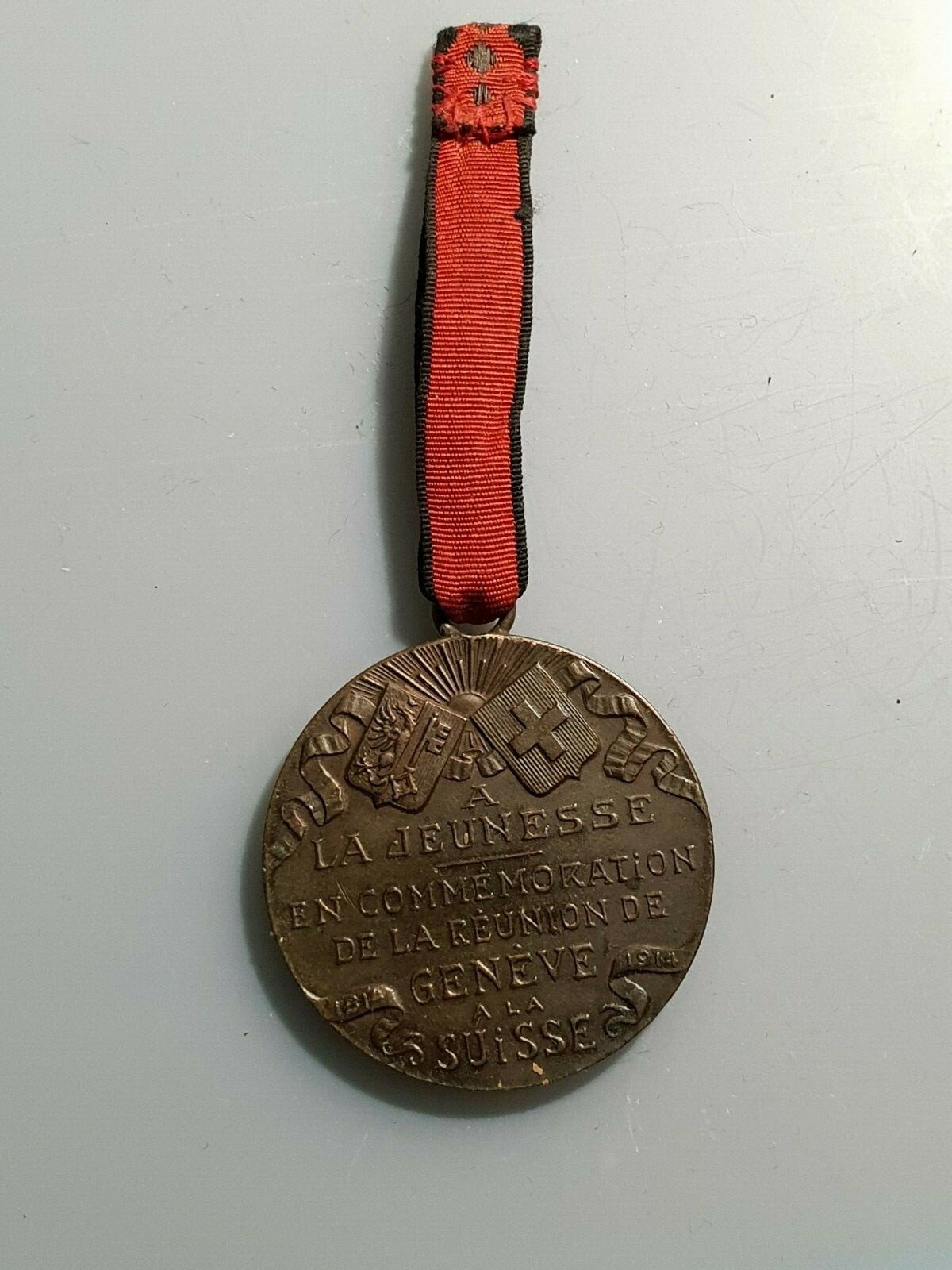 SWITZERLAND MEDALLA CONMEMORACION REUNION DE GINEBRA GENEVE A SUIZA 40×34 mm