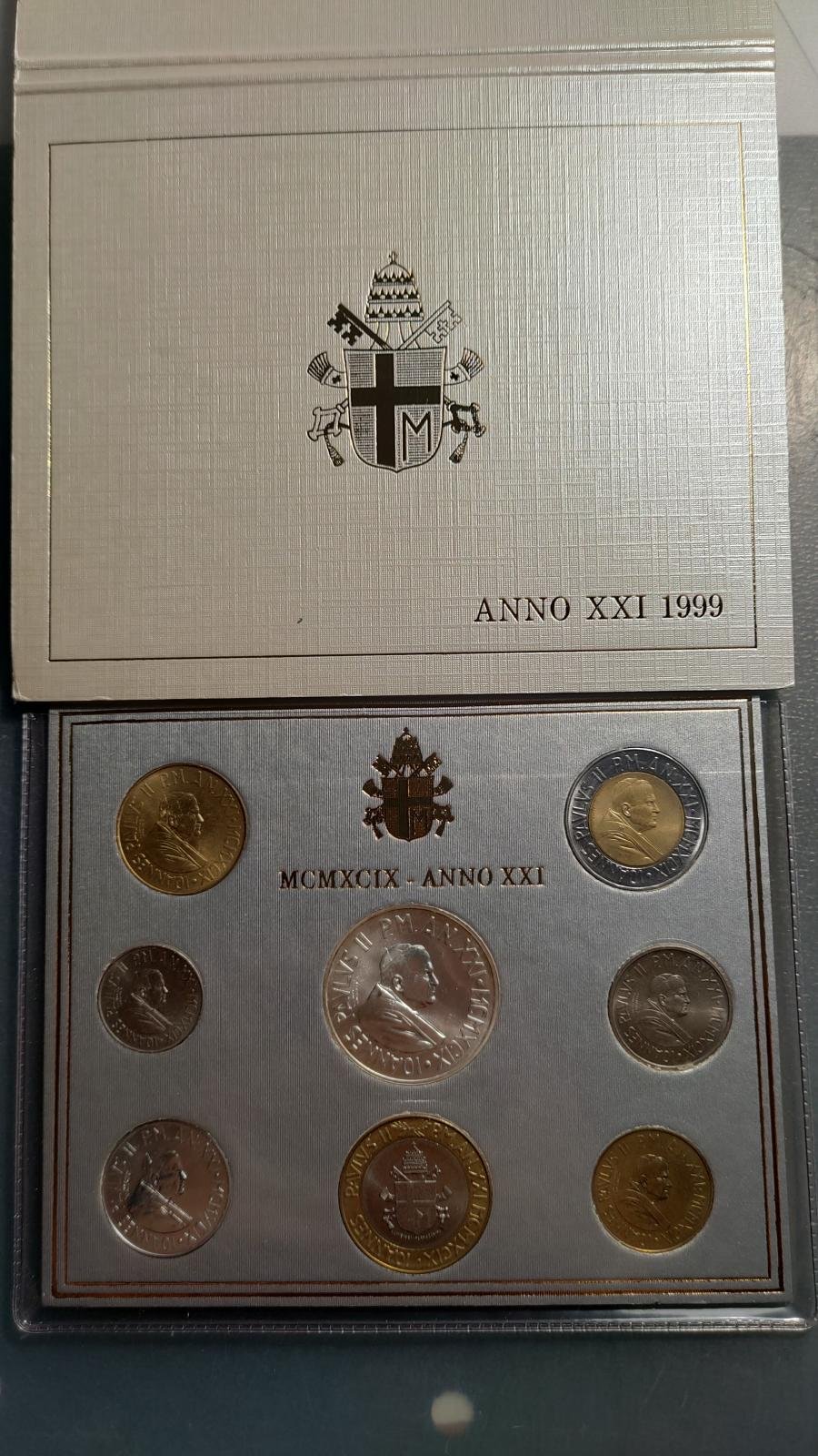 VATICANO JUAN PABLO II SERIE ANUAL OFICIAL 1999 1000 LIRAS BIMETALICAS Y PLATA